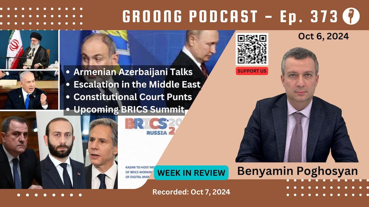 Benyamin Poghosyan - Armenia Azerbaijan, Escalation in the Middle East, Constitutional Court Punts, Upcoming BRICS Summit | Ep 373 - Oct 6, 2024