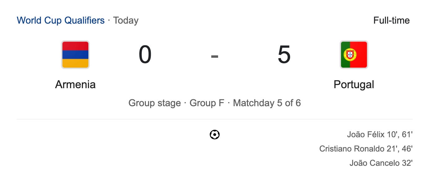 3. World Cup Qualifier: Portugal punish Armenia 5-0 in the 2026 World Cup qualifiers